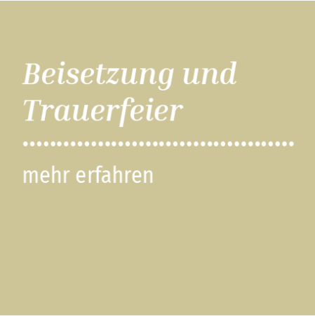 Wenn es heißt, Abschied von einem geliebten Menschen zu nehmen, sehen sich Hinterbliebene häufig unvorbereitet mit vielen Aufgaben konfrontiert. Um der eigenen, ganz persönlichen Trauer Raum und Zeit zu geben, wird in dieser Situation eine empathische und individuelle Begleitung benötigt.